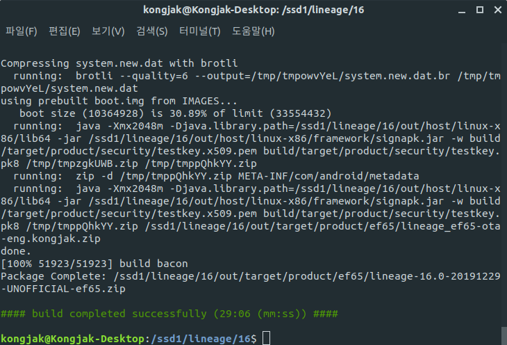 빌드가 정상적으로 끝났습니다.