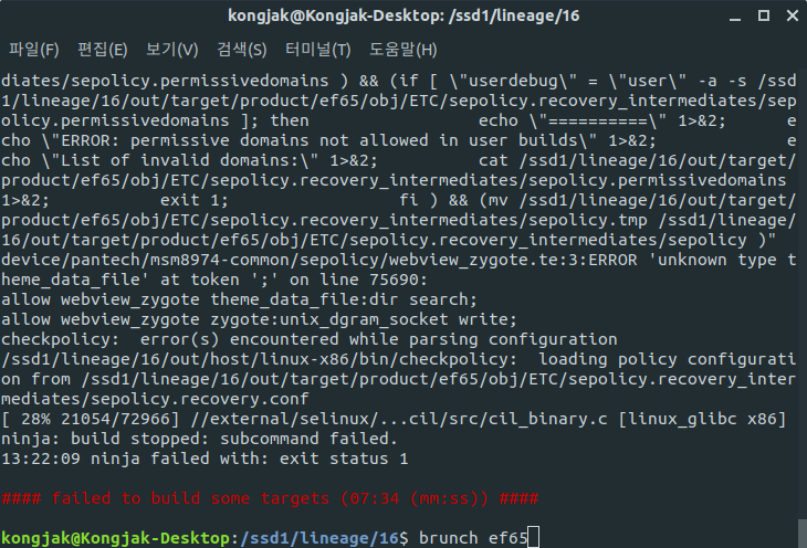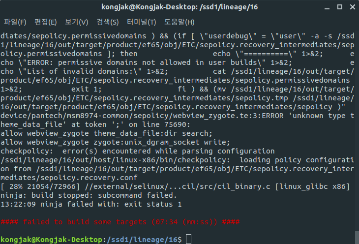 위와 같이 sepolicy 오류 발생시 해결법입니다.
