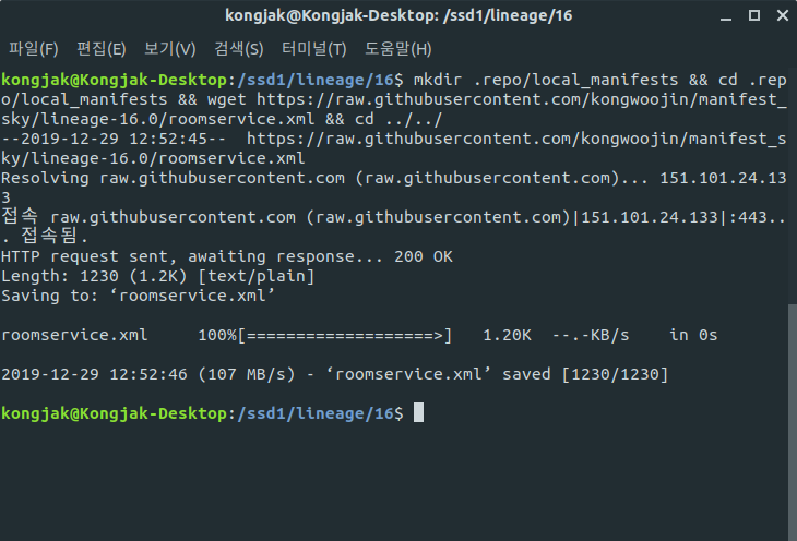 mkdir .repo/local_manifests && cd .repo/local_manifests && wget https://raw.githubusercontent.com/kongwoojin/manifest_sky/lineage-16.0/roomservice.xml && cd ../../