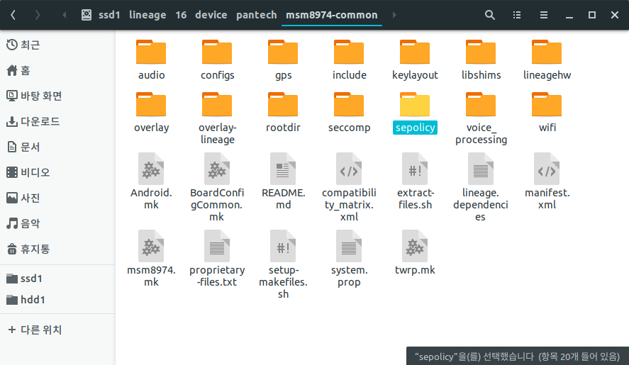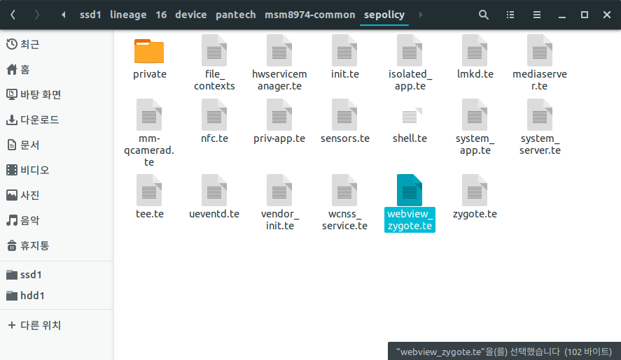 먼저 device/pantech/msm8974-common 경로에서 sepolicy 폴더를 찾아줍니다.