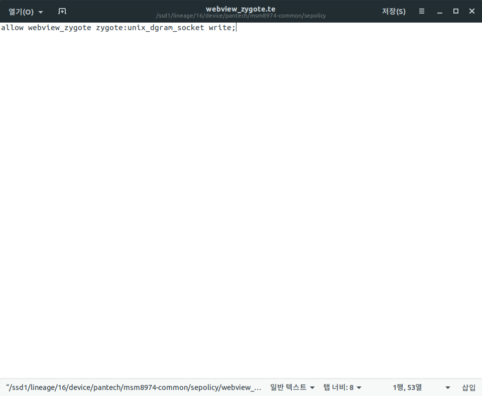 sepolicy 폴더 안에 webview_zygote.te를 수정해야 합니다.